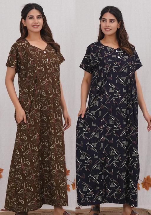 Experience ultimate comfort and style with our brand ”Vardhana” .This nighty gown is made up with 100% pure organic cotton directly crafted from the mill, which gives soft, breathable and luxurious feel. This cotton nighty is available in free size which has (bust:48) and (length:54) that fits to a normal body of every women from L to 2XL.This cotton nightdress has a relaxed fit and also has a side pocket so it stays comfort to your body.