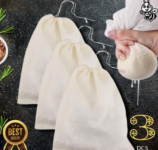 Product Name: Sami Studios 3 Pcs Set 10"x12" Premium Cotton Yogurt Strainer Bag, Cheese Cloth Bag, Nut Milk Bags, 100% Unbleached Organic Cotton Muslin bag Cheesecloth bag Hung Curd Reusable Food Strainer bag Colander for Straining Almond/Oat Milk, Sprouting Beans, Juice, Paneer, Yogurt, Cheese Making, Pack of 3