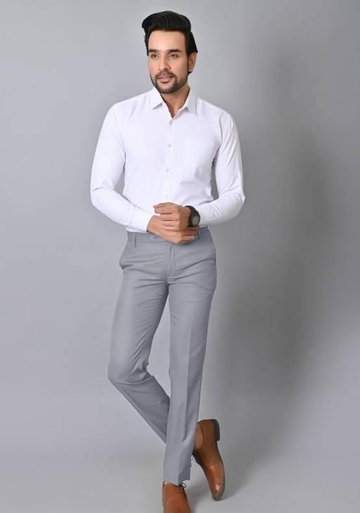 Name: Men Regular Fit Lightgrey Cotton Blend Trousers Pant
