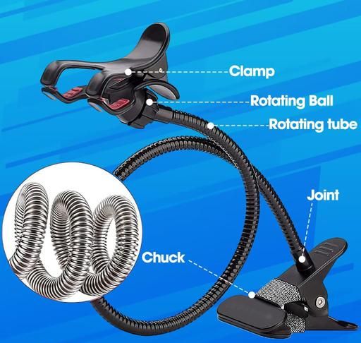 Name: New Arrival With Heavy Quality 360 Degree Rotatable Flexible Portable Foldable Metal-Lazy Stand Bracket Cell Phone Holder/Gooseneck Long Arm Clip Mobile Stand for Table Mobile Stand for Bed Office, Desk (Black) lazy stand