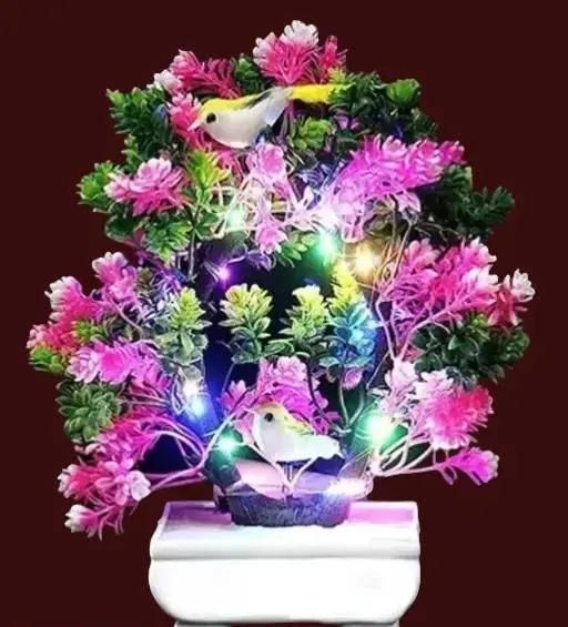 Name: Artificial bonsai plant 2 sparrow with led light pot for office MULTICOLOUR