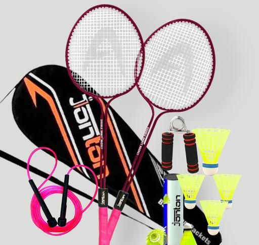 Jonton kid's king Double shaft badminton racket with 6 Nylon Shuttle and 1 Skipping rope 1 Hand Grip free