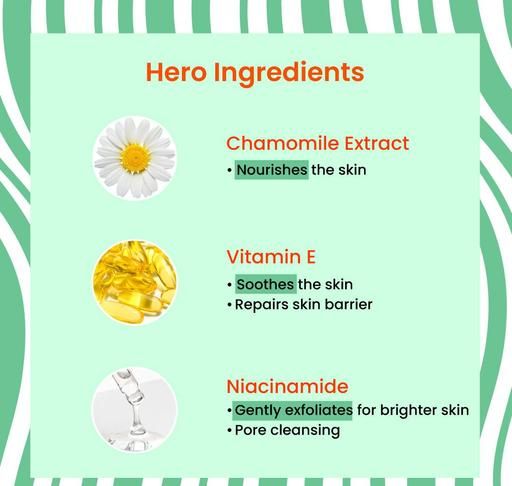 Helps to combat dullness: A gel face wash that cleanses your skin of dirt and impurities. Enriched with Niacinamide, Chamomile Extract, and Vitamin E, it helps soothe, improves texture, and provides antioxidant protection to combat damage and dullness.