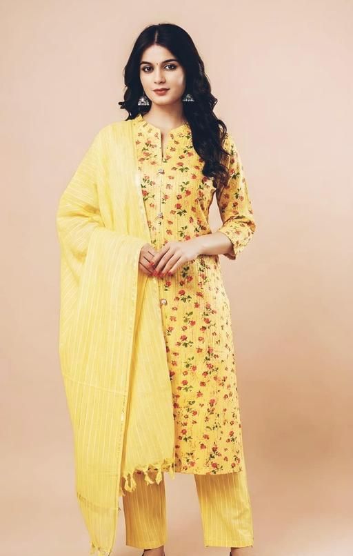 Name: ,,Women Dresses “Yellow Floral Printed Cotton,,Kurtiwith Pant &,,Dupatta Set,,for Women”Stylish Ethnic Wear,, Kurta Set,,Daily,Fastive,& Wadding Occasions Under 350 XS to 5XL size