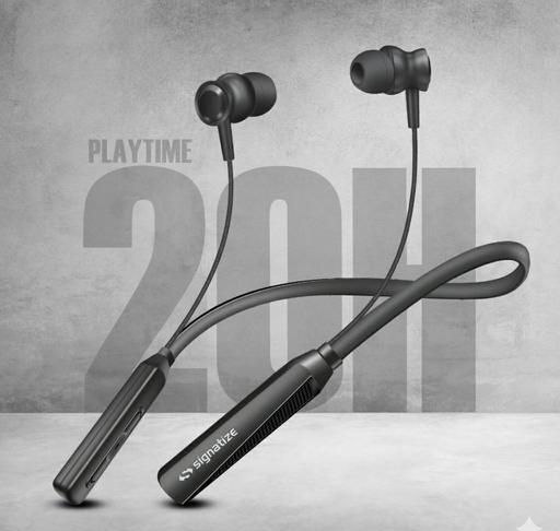 Signatize - A Wireless Neckband Design In India! Tune in to music, take calls and comes with an in-built mic so you can walk and talk and make sure you’re ready for whatever the day brings Once you try this wireless neckband, rated wireless neckband earphones are sure to change the way you enjoy sounds in your life!. It is equipped with high-capability rechargeable lithium polymer battery with 1hours of charging time that will allow you to listen to your music above 20 hours straight.