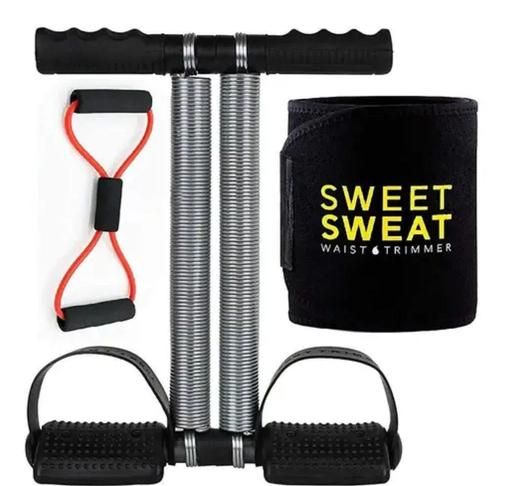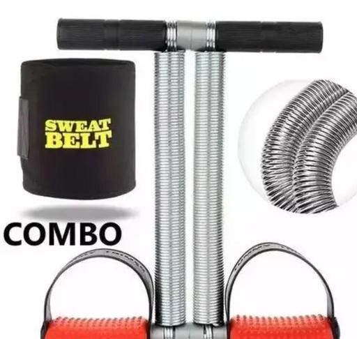 Name: Double Spring Tummy Trimmer Combo with Sweat Belt & Toning Tube Resistance Band Abdominal Gym Accessories Fat Buster Exerciser Abs Workout Equipment for Men & Women
