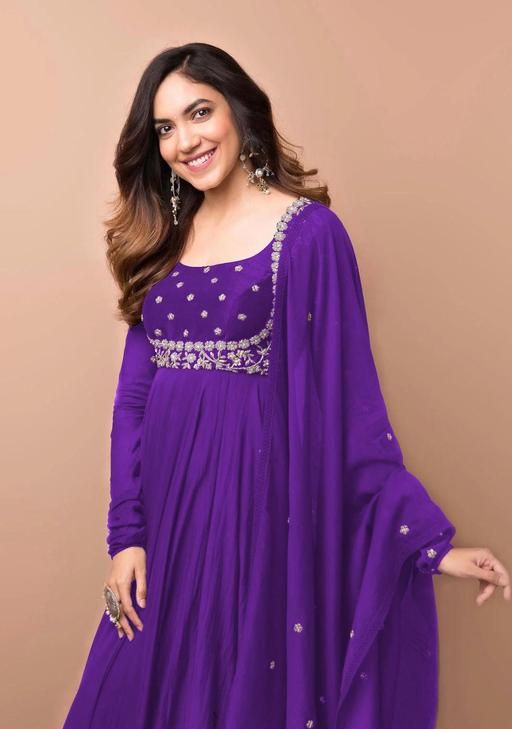 Name: LATEST KURTA SET, Kurta With Dupatta Anarkali Trendy Latest Dark Wine Pure Gerogette Gown Embroidery Dupatta New Fashion #Latest Fashion #Casual #Party #Ethnic#Dresses #Kurtis