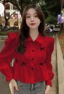 Name: Trendy Pleated Long Sleeve Women Shirt top&tunic