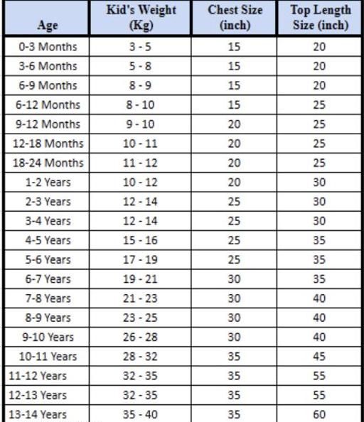 12-13 Years (Bust Size: 26 null, Length Size: 20 null, Waist Size: 24 null)