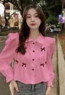Trendy Pleated Long Sleeve Women Shirt top&tunic