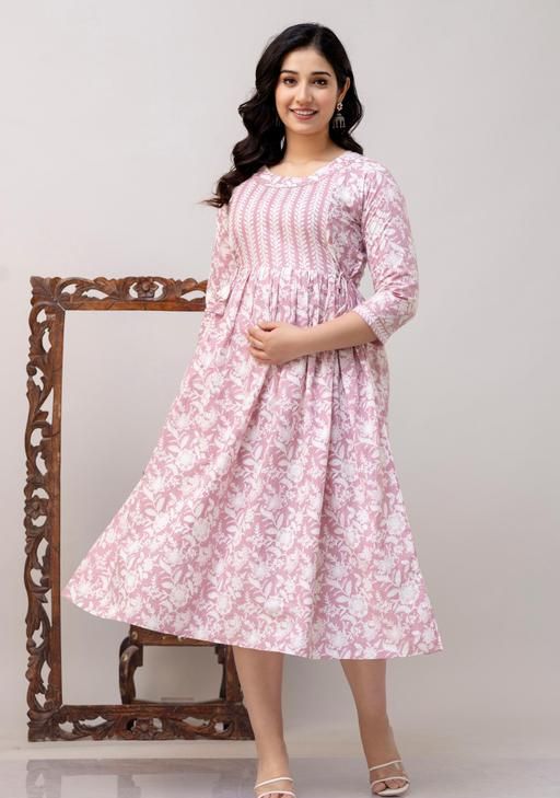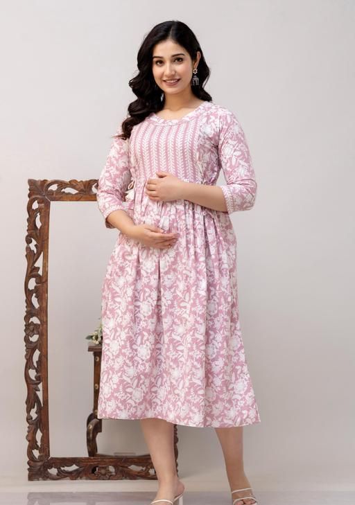 Name: Cotton Printed Fit and Flare Midi Maternity And Feeding Dress