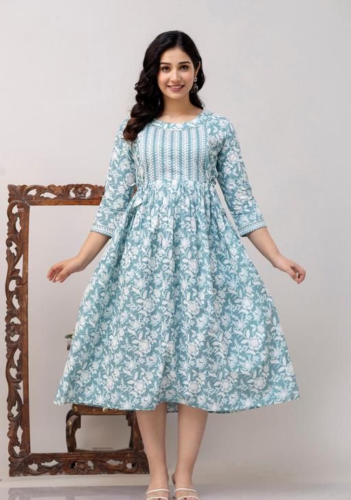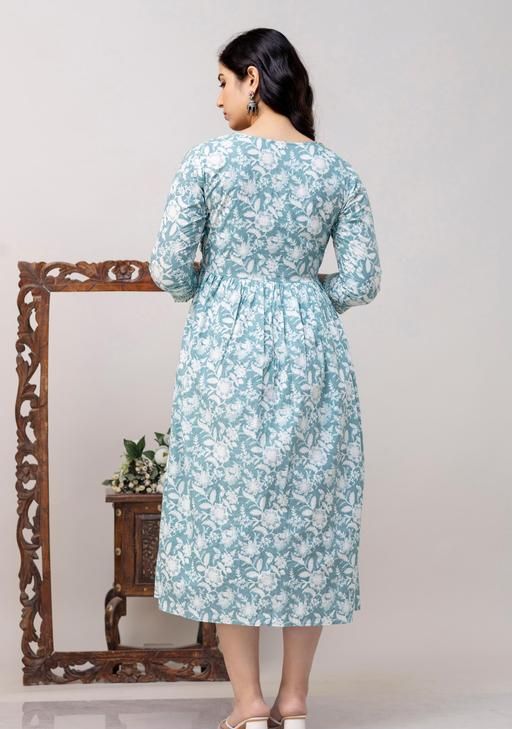 Name: Cotton Printed Fit and Flare Midi Maternity And Feeding Dress