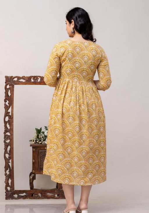 Name: Cotton Printed Fit and Flare Midi Maternity And Feeding Dress