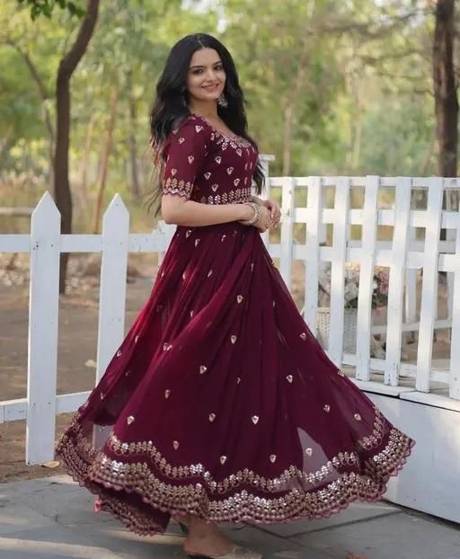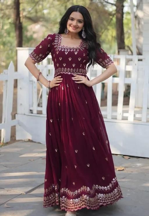 ONLINE SHOP LAUNCH NEW AKIRA HEAVY GEORJET SIQUENCE EMBROIDRED WORK GOWN