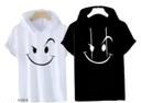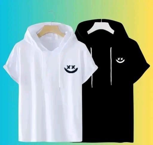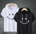 Add a fun twist to your casual look with this trendy white T-shirt featuring a quirky smiley face graphic and a stylish black hood. Made from soft, breathable polyester, this T-shirt is designed to keep you comfortable all day long.
