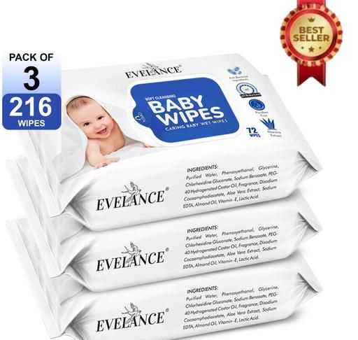 Product Name: EVELANCE Baby Wipes 72 Sheets pack of 3/Without Lid