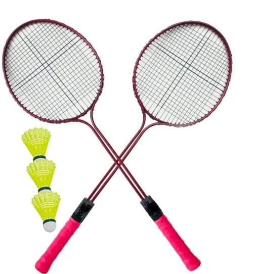 Good quality, 2Pcs double shaft rackets & 3 Pcs plastic shuttles