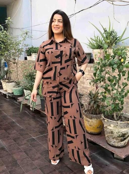 Name: Women Printed Shirt & Trouser Co-Ords Set