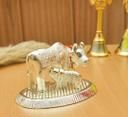Name: Silver Kamdhenu Cow and Calf Set Glossy | Decorative Showpiece in Small Size Decorative Showpiece - 5 cm (Metal, Silver)