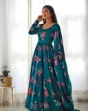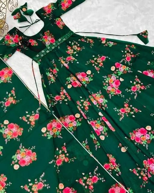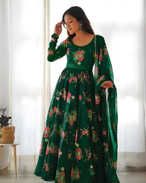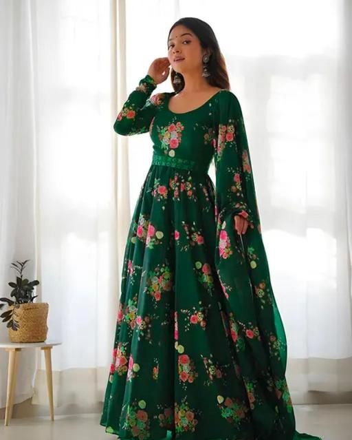 Name: Flower Print Long Gown With Dupatta (No Bottomwear)