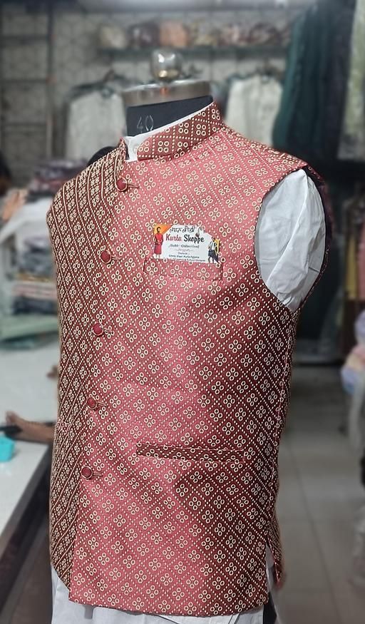 Name: NEHRU JACKET Fabric: Art Silk Sleeve Length: Sleeveless Pattern: Printed Combo of: Single Sizes: S, M (Length Size: 25 in, Waist Size: 38 in) L (Length Size: 26 in, Waist Size: 40 in) XL (Length Size: 26 in, Waist Size: 42 in) Polyester jacquard silk party wear mens koti Country of Origin: India