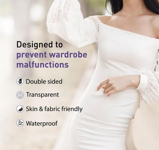 Ideal for styling deep necklines, securing saree pleats, preventing gaping tops, and fixing slipping straps, this tape is the ultimate wardrobe essential.