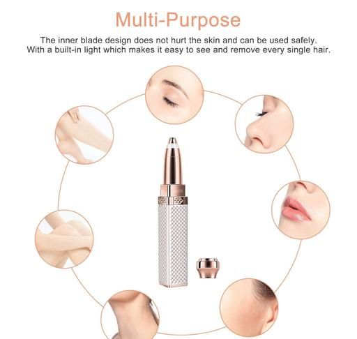 Dual Trimming Heads: Equipped with two interchangeable heads, this razor addresses different beauty requirements, making it suitable for eyebrows, facial hair, lip hair, nose hair, arms, legs, back, and armpits.