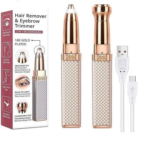 Product Name: Eyebrow Trimmer for Women, 2 in 1 Rechargeable Facial Hair Remover with Replaceable Heads, Professional Painless Personal Hair Removal Eyebrow Razor with Indicator Lights, (Rose Gold)