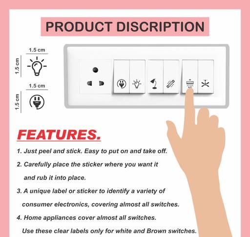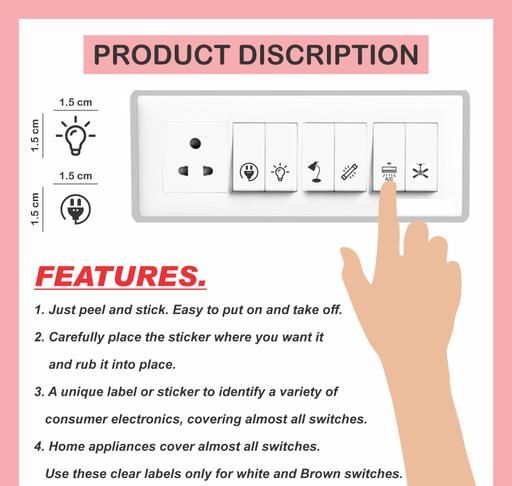 UNIQUE LABELS : Unique labels and stickers are available for use on switches in different settings, including homes, offices, hospitals, public places, etc.