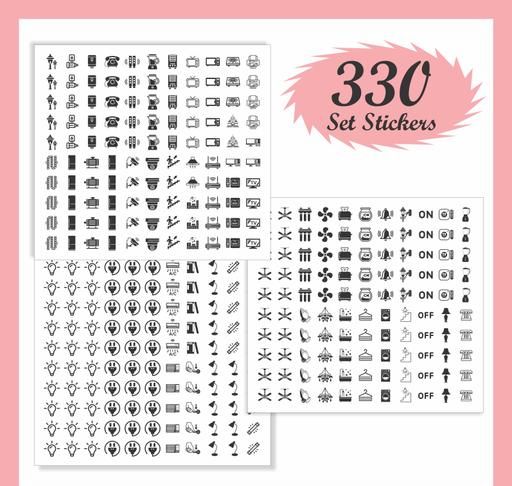 Name: Switch Sticker For Electric Board Appliances Including 52 Designs in Total 330 pcs Switch Board Stickers multi color High Quality Self Adhesive Sticker