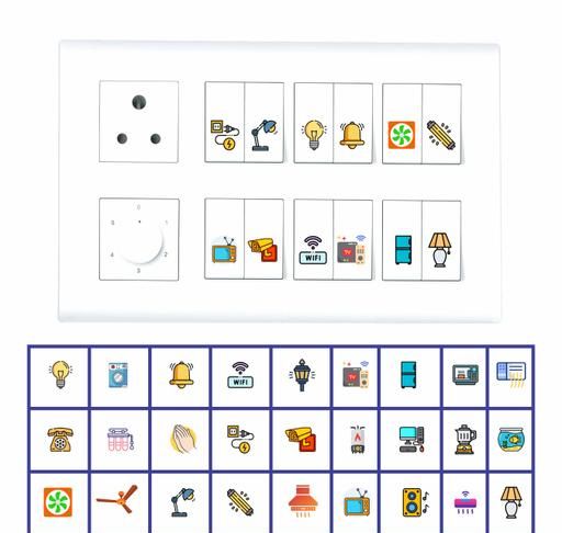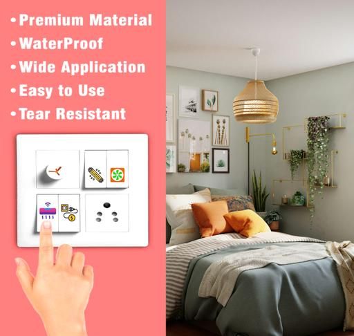 IDEAL FOR : This Switch sticker is ideal for <warning name='Holme's'>homes</warning>, offices, hospitals, hotel rooms, and anywhere there are electric board appliances available. It has a bright and vivid design which clearly shows what each switchboard is used for.