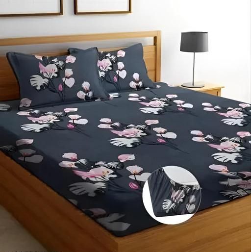 Name: Super Soft Glace Cotton All Round Elastic Fitted Bed Bedsheet Double King Size Bedsheet 72x78x8 Inches with 2 Pillow Covers
