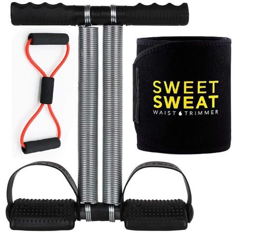 Name: Double Spring Tummy Trimmer Black Color Combo with HEAVY sweat belt & HEAVY Figure 8 RASISTANCE BAND