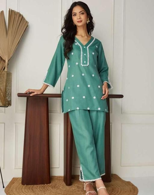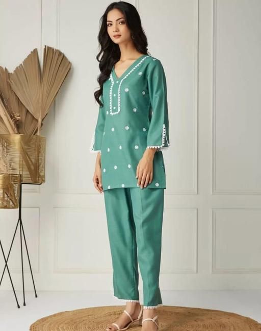 Premium Cotton Slub Coord Set for Summer, Embroidered Top and Palazzo To wear in daily wear | office wear | picnic wear
