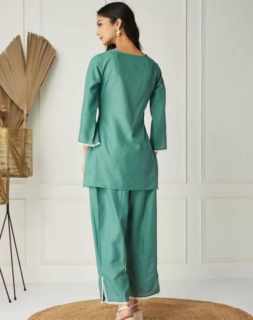 Name: Premium Cotton Slub Coord Set for Summer, Embroidered Top and Palazzo To wear in daily wear | office wear | picnic wear