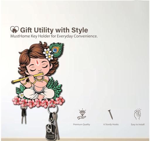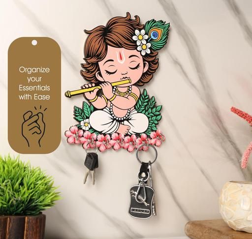 Name: Kalasagar Premium Little Krishna Combo Wooden Wall Key Holder, Key Hanger for Living Room | Home Decor | Office Gift Items - 11.5' x 9' Inch Multi, (Combo Pack -2))