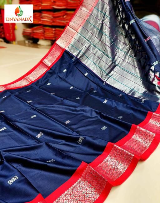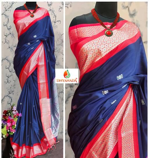 Name: Mina Traditional Paithani Sico Silk Sarees With Blouse Piece (Navy & Red)
