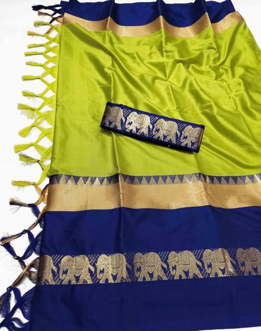 Name: Rajawadi Elegant Elephant Design Cotton Silk Saree (Mustard & Purple)