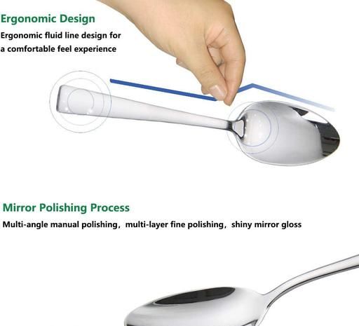 【HIGH QUALITY AND DURABLE】: Our cutlery set are made of top food grade stainless steel with mirror finish, providing you with a durable kitchen spoon set that will last you many years. Their edges h