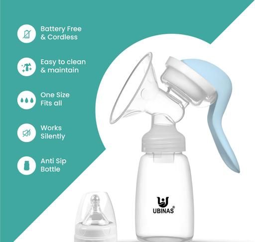 Ubinas Manual Breast Pump with Feeding Nipple and Silicon Pad with One Year Warranty | Breast Milk Pump | Breast Pumps | Breast Pump