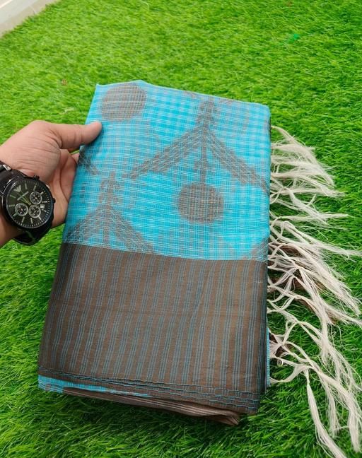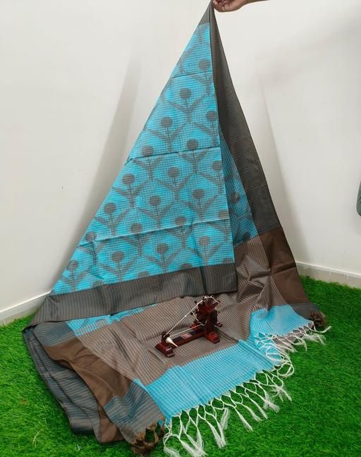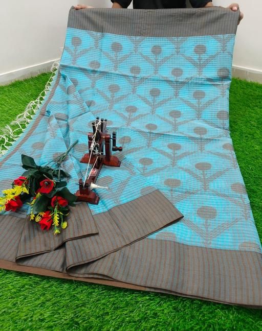 Name: Kota Jaal Silk Saree in Light Firozi with Brown Square Buti Design