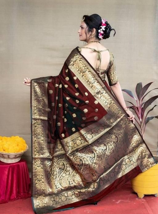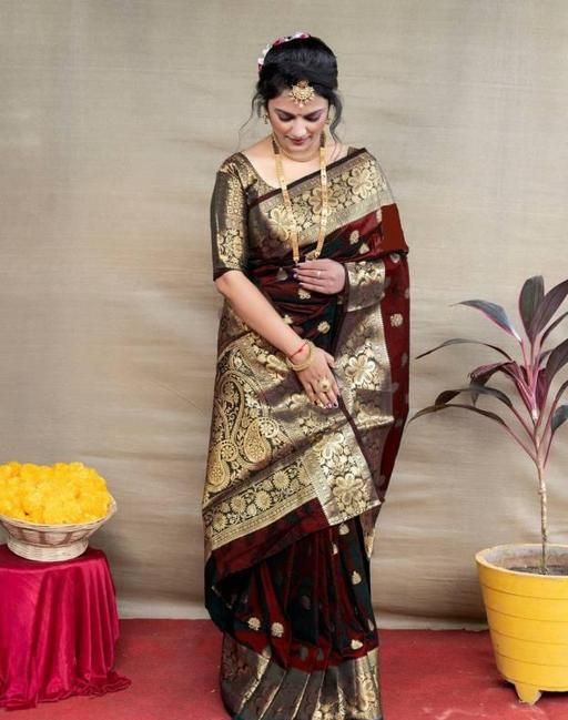 Name: Premium Women's Jacquard Banarasi Silk Saree with Zari Woven Design, Ideal for Weddings & Festivals, Includes Unstitched Blouse Piece for Elegant Ethnic Wear