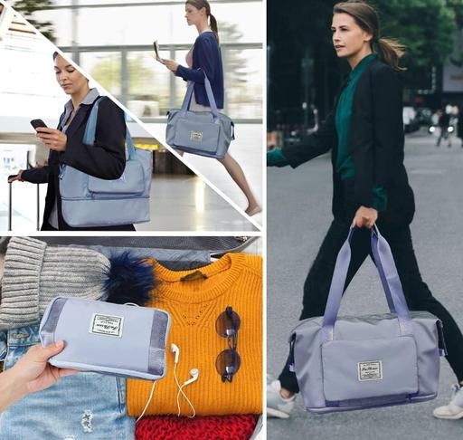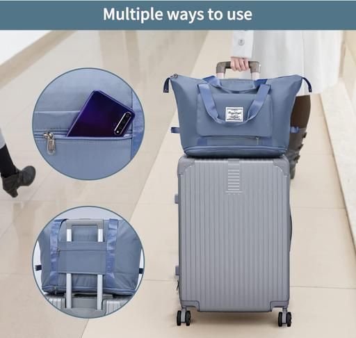 EXPANDABLE TRAVEL BAG:- Friendly shoulder travel duffle bag for women, 2 levels of expansion. After unfolding, the folding travel bag will rise from 8.6 inches to 12.6 or 16.5 inches. The trolley sleeve fixes the bag to the suitcase to reduce the burden of the journey. You can put your ticket, passport, and mobile phone in your luggage case.