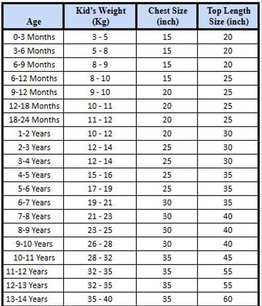 8-9 Years (Chest Size: 14 null, Length Size: 15 null)