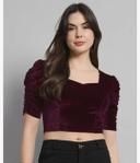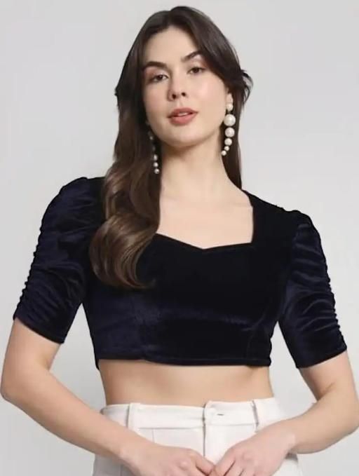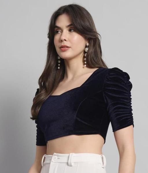Name: KIYANSH FABRICS Velvet Puff Sleeve Blouse – Stylish Partywear Crop Top For Women