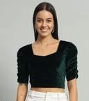 KIYANSH FABRICS Velvet Puff Sleeve Blouse – Stylish Partywear Crop Top For Women