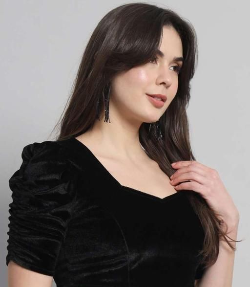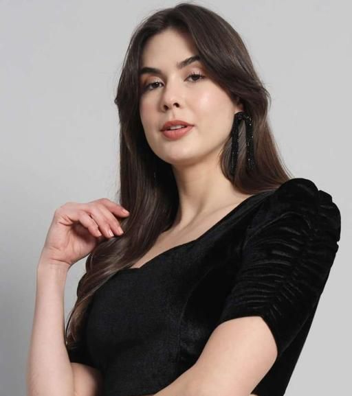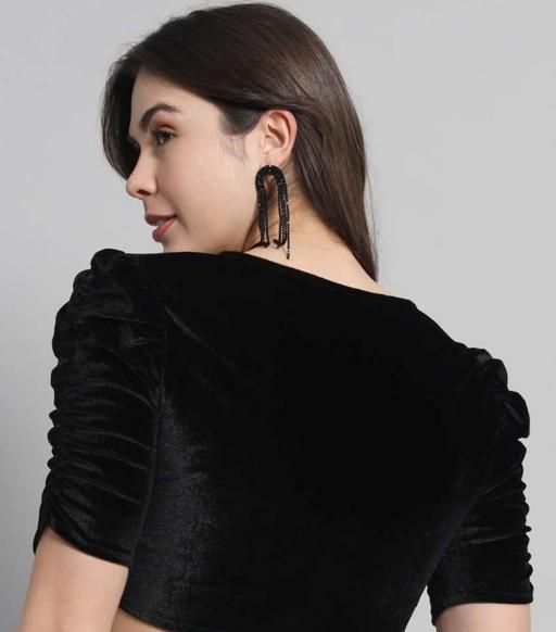Name: KIYANSH FABRICS Velvet Puff Sleeve Blouse – Stylish Partywear Crop Top For Women