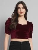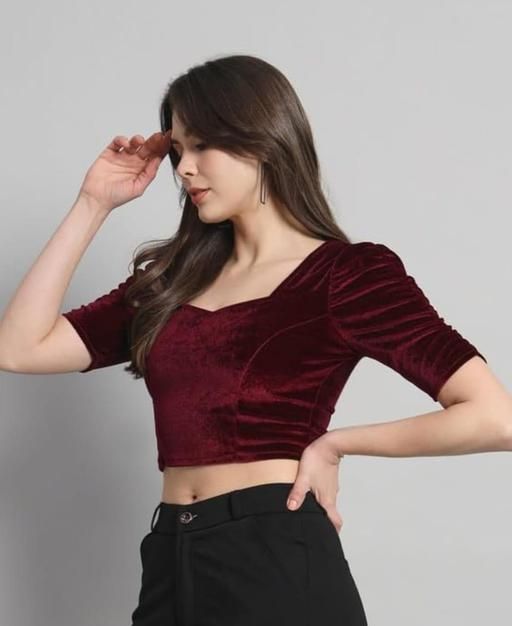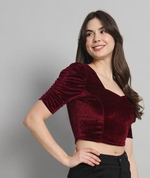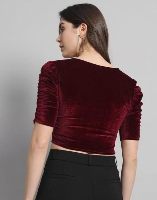Name: KIYANSH FABRICS Velvet Puff Sleeve Blouse – Stylish Partywear Crop Top For Women