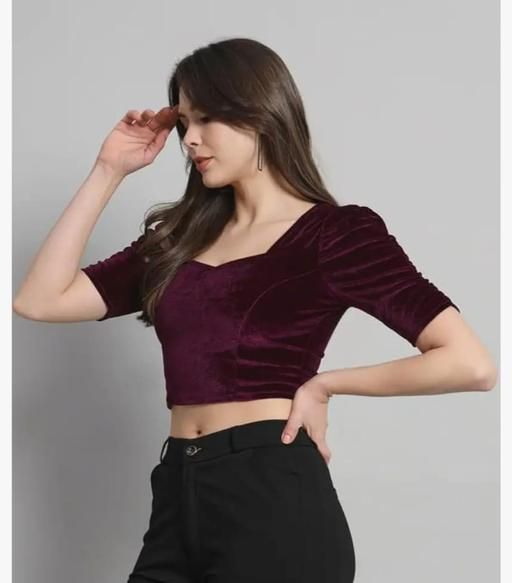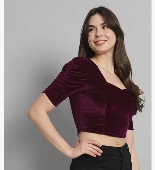 Name: KIYANSH FABRICS Velvet Puff Sleeve Blouse – Stylish Partywear Crop Top For Women