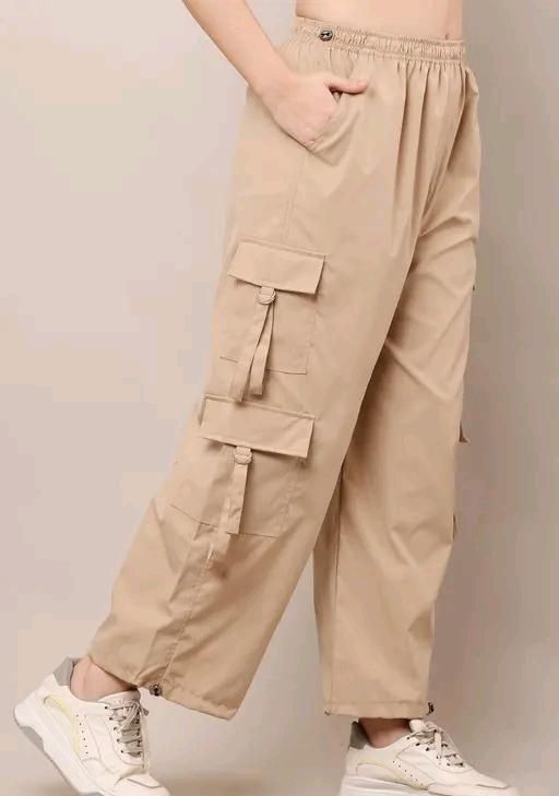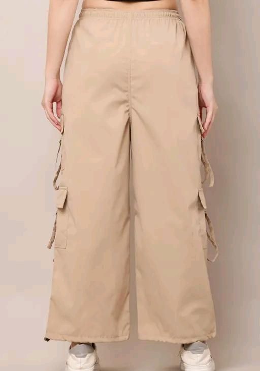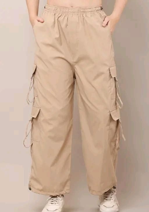 Name : FAIZ# Fashion Cream Cargo Pant Trouser Light Grey Color Plus Size Military Cargo Oversized for Woman with Bottom Elastic for Daily Wear